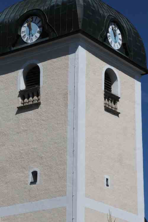 - Turmuhren in den breiten Unterbau eingefügt