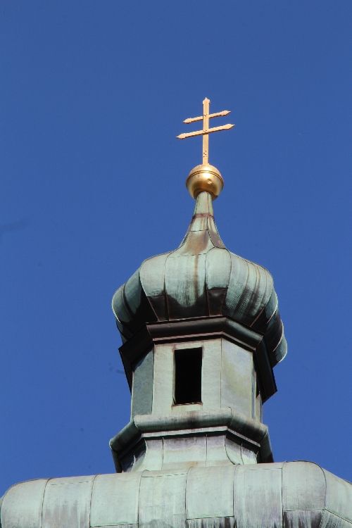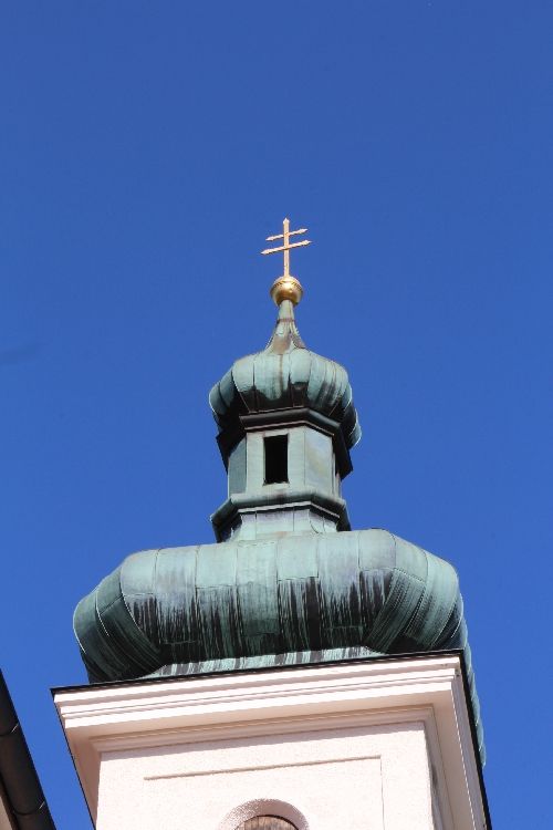 untere Zwiebel ein Quadrat mit abgestumpften Ecken, obere Zwiebel achteckig