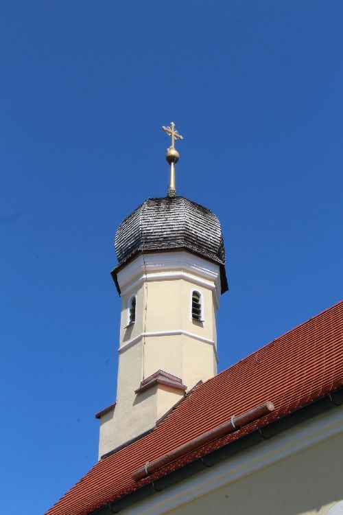 - breiter, weißer Putzsims im Übergang zur Zwiebel