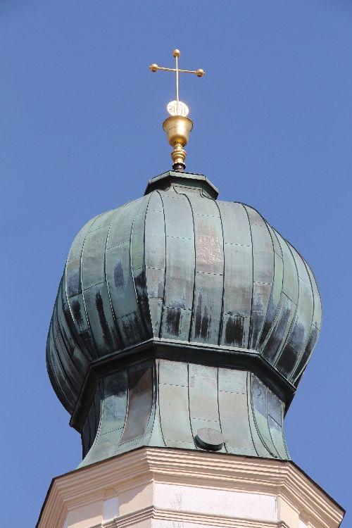- goldener Kelch und Plakette anstelle der Kugel an der Spitze