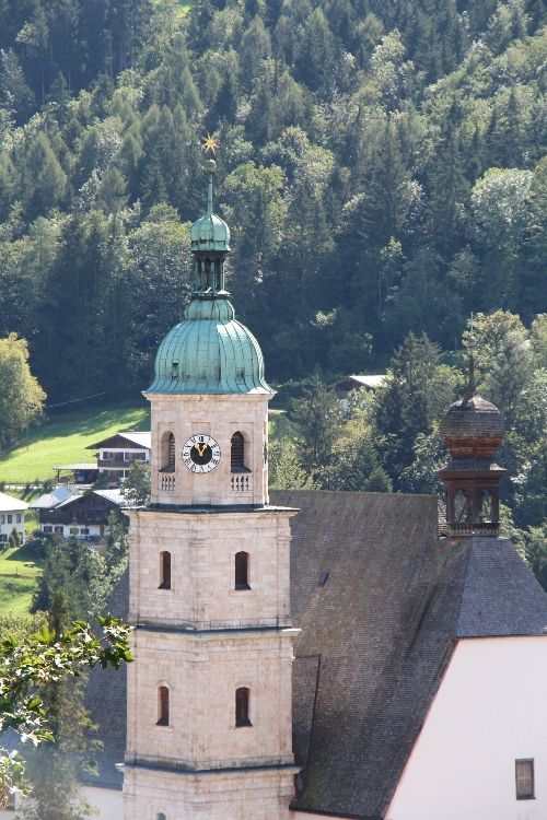 - achteckiges, offenes Glockenstockwerk mit Uhren und Balustraden